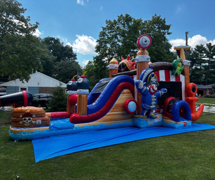 Embark on a high-seas adventure with our Pirate Ship Combo – a thrilling inflatable play structure that brings the excitement of a pirate voyage to life! This versatile combo unit combines bouncing, climbing, sliding, and imaginative play, creating an unforgettable experience for young buccaneers. This will be sure to transform your backyard into a pirates cove for any event.
