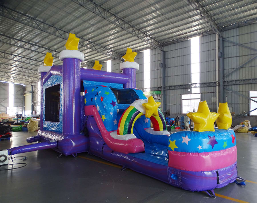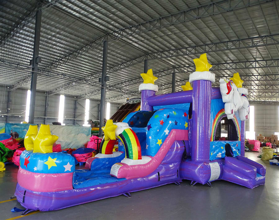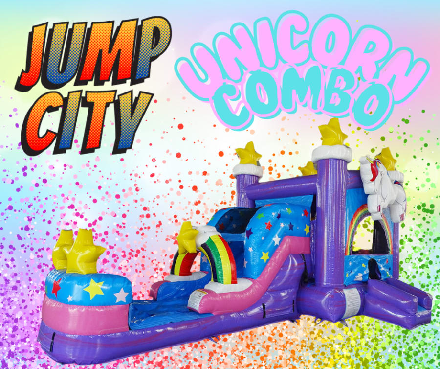Step into a realm of wonder and delight with our Unicorn Bounce House Combo! This whimsical inflatable castle features vibrant unicorn graphics, complete with rainbow-colored mane and tail and an enchanted slide into imagination fairyland. Inside, kids can bounce and play to their hearts' content, surrounded by magical imagery that sparks their imagination. Crafted from durable materials and equipped with safety features, it's a dream come true for little ones.