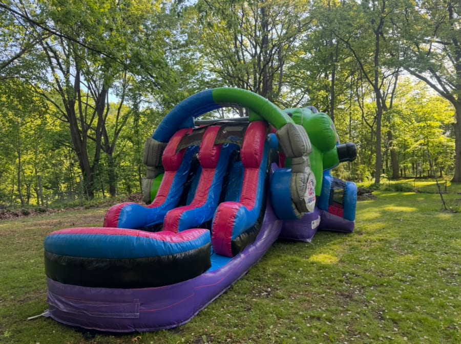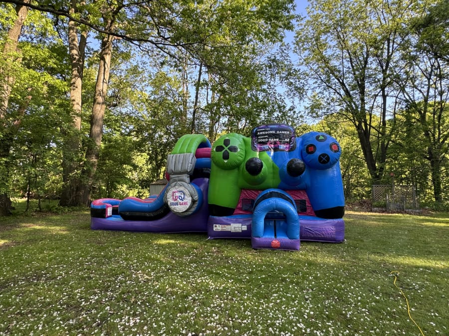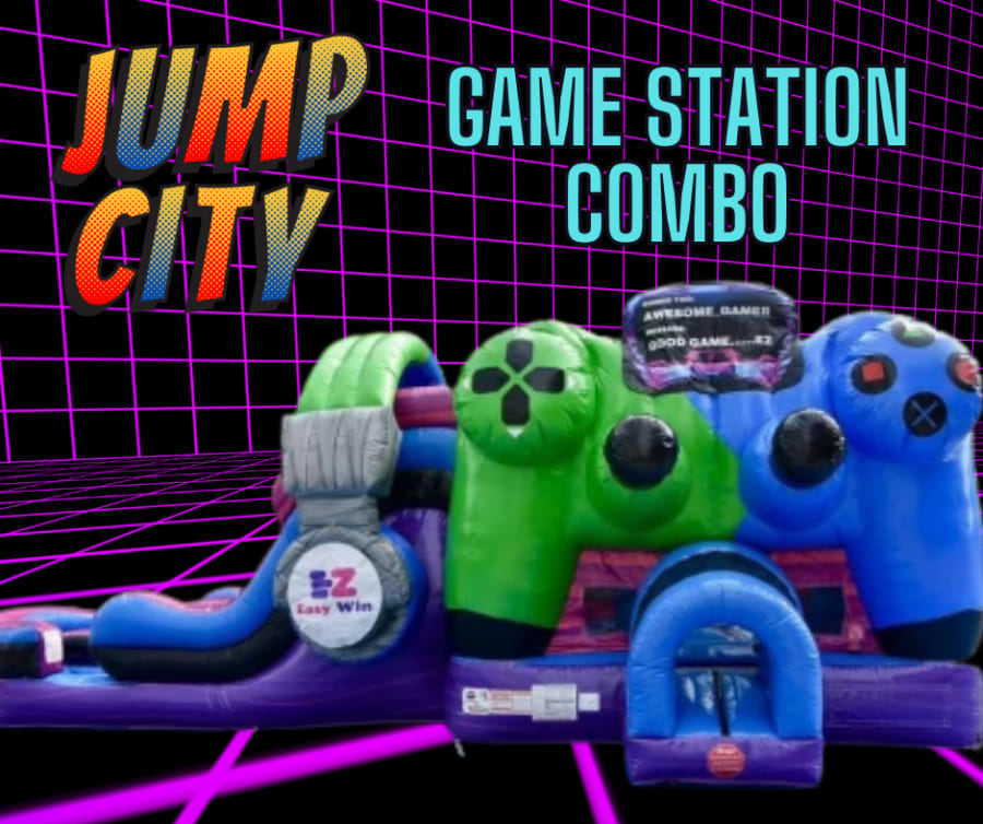 Get ready to embark on a gaming adventure like never before with our Game Station Bounce House Slide Combo! Transform any event into a pixelated paradise, where bouncing and sliding meet the excitement of video game fun. Step inside the inflatable Game Station and bounce your way into a world filled with pixels and power-ups. The spacious bounce house area is perfect for gamers of all ages to jump, play and level up. Bring the joy of gaming to the real world with our Game Station Video Game Themed Bounce House Slide Combo. It's more than just bouncing – it's a gaming experience that transcends the screen!