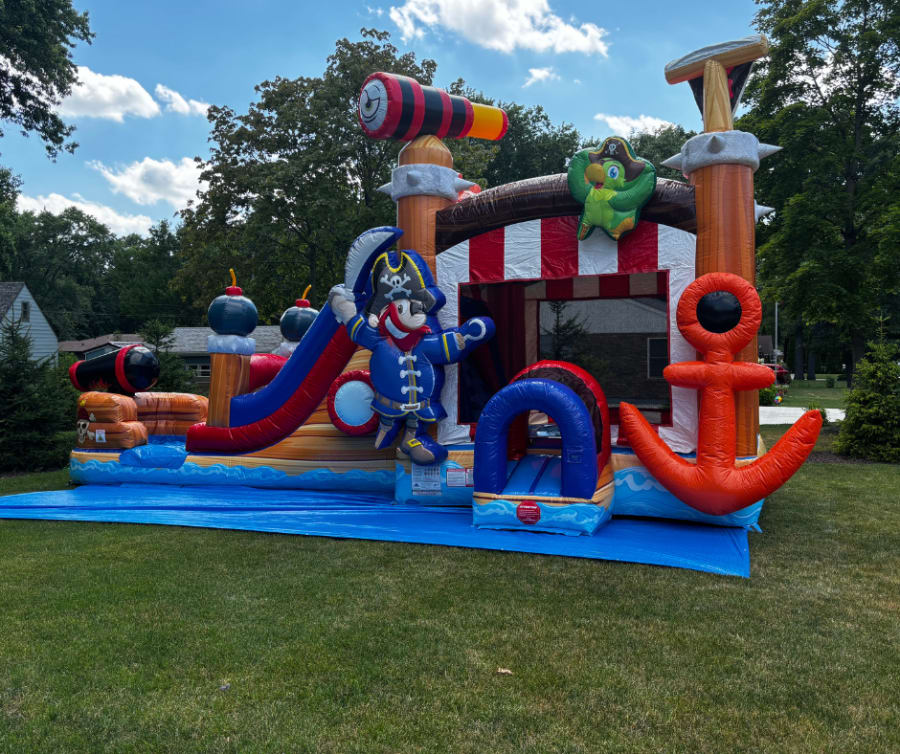 Embark on a high-seas adventure with our Pirate Ship Combo – a thrilling inflatable play structure that brings the excitement of a pirate voyage to life! This versatile combo unit combines bouncing, climbing, sliding, and imaginative play, creating an unforgettable experience for young buccaneers. This will be sure to transform your backyard into a pirates cove for any event.