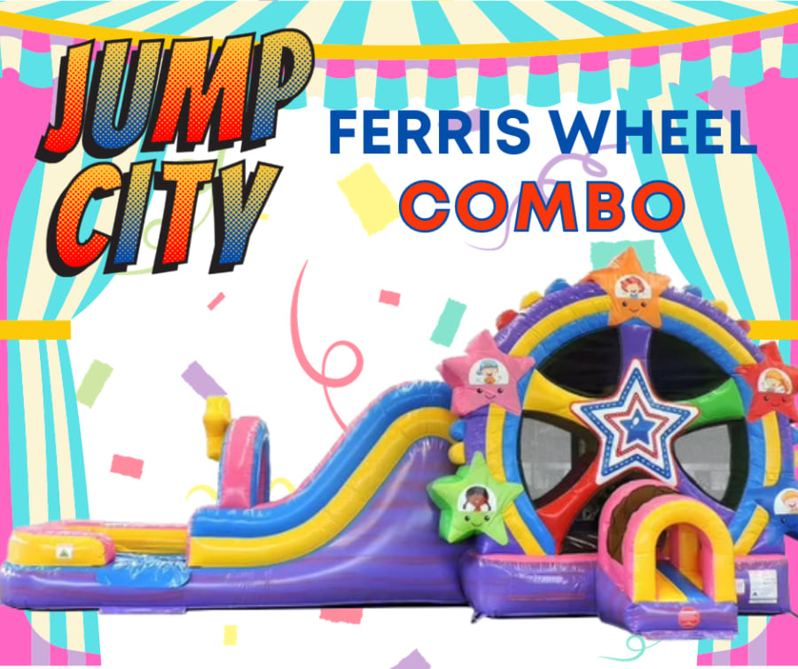 Step right up to a carnival of excitement with our Ferris Wheel Adventure Combo – an inflatable play structure that combines the thrill of a Ferris wheel with the joy of bouncing, climbing, and sliding. This versatile combo unit transforms any event into a carnival-like experience. The inflatable structure becomes the centerpiece of your carnival wonderland that all guests will enjoy over and over.