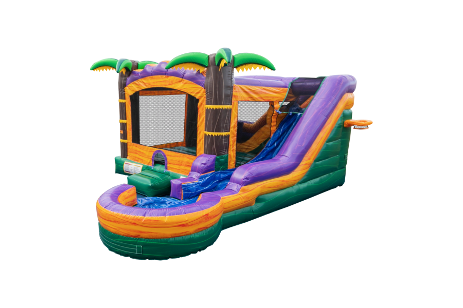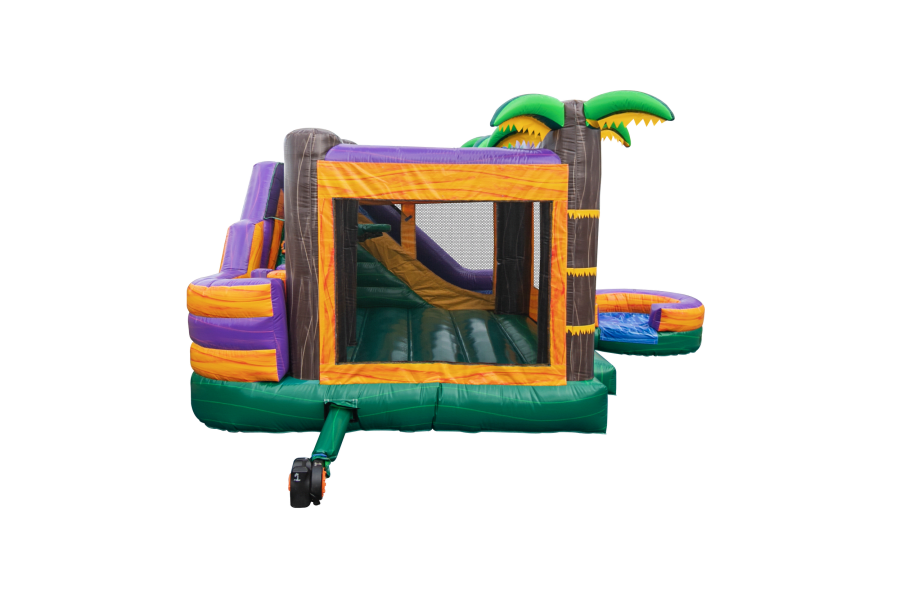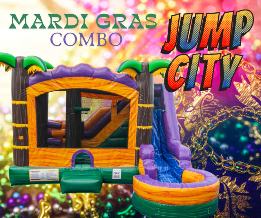 Kick off the festivities with our Mardi Gras Bounce House Combo! Bursting with color and adorned with traditional Mardi Gras motifs like masks, beads, and feathers, this inflatable castle sets the stage for a carnival atmosphere. Kids can jump and play to their heart's content, as well as conquering a mini obstacle on the way to the thrilling slide. All while being surrounded by the festive energy of Mardi Gras. It's the perfect centerpiece for any celebration!