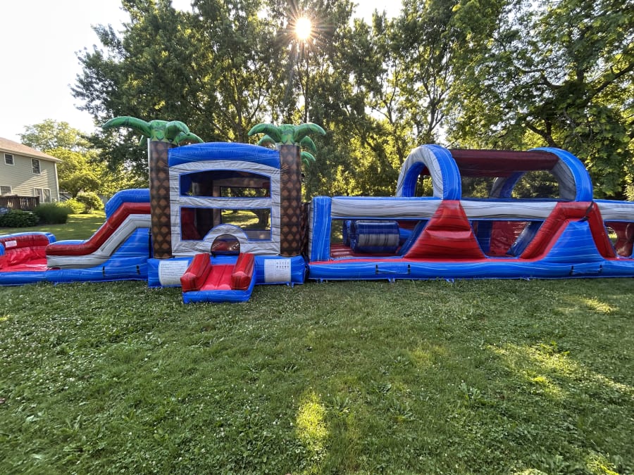 The Baja Splash Combo OBSTACLE is perfect for large gatherings, birthday parties, school events, and any occasion that needs a little extra excitement. With its vibrant, tropical design and combination of challenging obstacles, bouncy fun, and sliding thrills, it’s sure to be the highlight of your event.