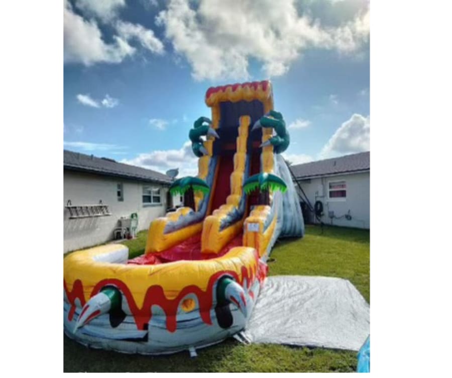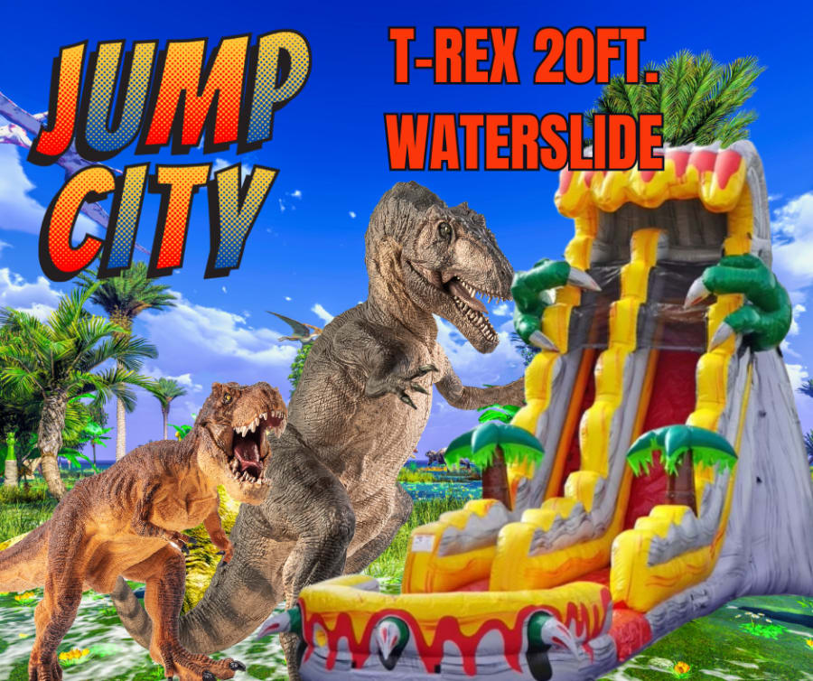 Take your summer to prehistoric heights with our 20 ft Tall T-Rex Themed Waterslide! This colossal inflatable slide is not just a splash – it's a dino-sized adventure waiting to happen, combining the thrill of sliding with the majesty of the mighty T-Rex. This waterslide will guarantee your guest's have a roaring good time.