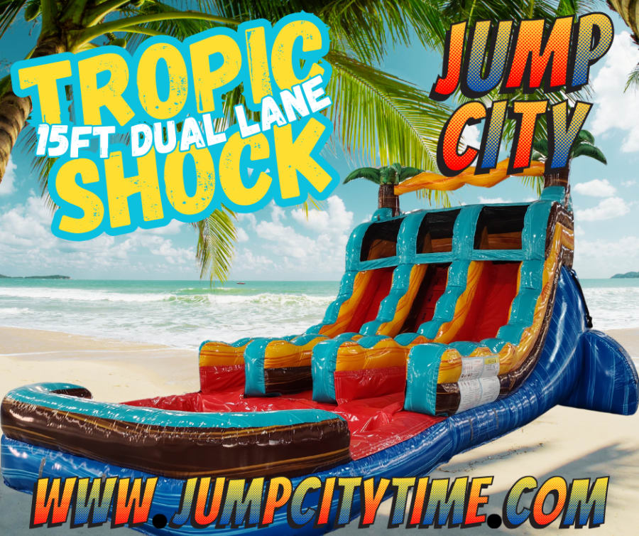 Cool off and slide into paradise with the Tropic Shock 15ft Waterslide! This exhilarating inflatable waterslide brings the thrill of a tropical escape right to your backyard, featuring a sleek 15-foot drop that guarantees a wild ride every time. Perfect for both kids and adults, the Tropic Shock will turn your event into an unforgettable water adventure, whether it's a birthday party, summer BBQ, or just a fun day in the sun.
