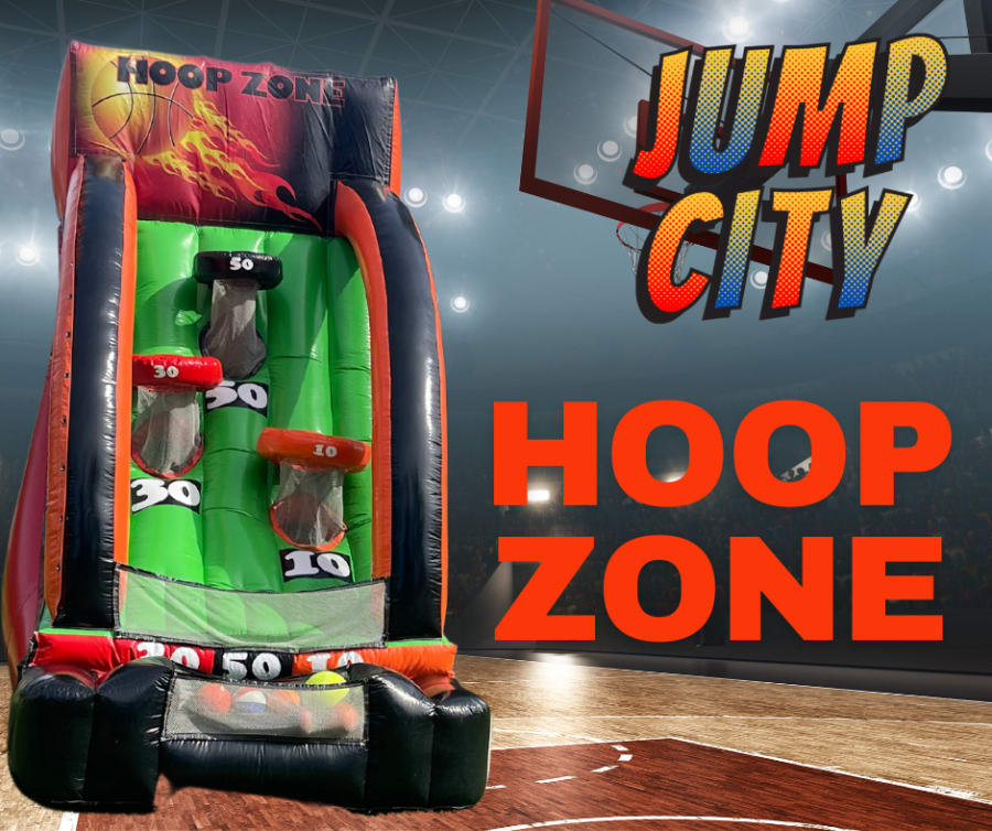 This fast-paced competitive HOOP ZONE inflatable sport game will have participants offering up their best shots, in this 3 level point scoring basketball game unlike any other. Each player can engage in a crossover shooting action as they try to make baskets, the first player to get rid of all their basketballs rules this inflatable court. This spirited inflatable game is sure to attract plenty of future NBA stars! This HOOP ZONE inflatable game is a great way to and extra fun to any birthday party or event for guests of any age. This inflatable basketball shooter game will attract players to any indoor or outdoor event.